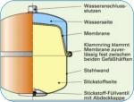 AusdehnungsgefäßAusdehnungsgefäße halten den Druck von Flüssigkeiten in Heizungsanlagen stabil. Da sich bei Flüssigkeiten das Volumen durch das Erwärmen und das Abkühlen verändert, wird der Druck dieser Flüssigkeiten durch das Ausdehnungsgefäß konstant gehalten. Wasser lässt sich als Flüssigkeit nicht komprimieren, Gase aber lassen sich komprimieren.Daher wird zum Erhalten des gleichmäßigen Druckes in Ausdehnungsgefäßen mit Gas undeiner abtrennenden Membran gearbeitet. Als gut komprimierbares Gas wird oft Stickstoffoder Luft eingesetzt. Das Ausdehnungsgefäß ist eine von zwei Sicherheitseinrichtungen gegen Überdruck imHeizkreislauf (die zweite ist das Sicherheitsventil).Abhängig ist die Art der Ausdehnungsgefäße natürlich in erster Linie von der Dimensionierung der Heizung(Wasserinhalt und min. - max. Temperatur).Durch den Gasdruck des AG, den Wasserinhalt der Anlage,die min. und max. Temperatur des Mediums (Flüssigkeit) und das Sicherheitsventil wird der Anlagendruck Wasser seitigbestimmt.Ist dieser Anlagendruck dauerhaft über oder unterschrittenwird die Lebensdauer des Ausdehnungsgefäßes (Membran)stark verkürzt.Überprüft wird das AG bei jeder Wartung der Heizungsanlage(sollte bei einer vernünftigen und fachgerechten Wartung).Wenn das AG aus dem Füllventil Gas seitig Wasser durchlässt,ist die Membran des AG defekt = Austausch des AG nötig.Wenn das AG keinen Gasdruck mehr besitzt, kann man versuchen, dass AG Gas seitig wieder zu füllen. Dafür muss es aber Wasser seitig drucklosgemacht werden. Meist ist es so das kurze Zeit später wieder Druck verloren ist,da Membran oder Füllventil Gas seitig defekt ist. Deshalb raten wir zu einem Austausch des AG, um eventuellen unnötigen Mehraufwand zu vermeiden.Aufbau Membran-AusdehnungsgsgefäßMan unterscheidet zwischen Trinkwasser undBrauchwasser Ausdehnungsgefäß.Das Trinkwasser AG hat eineLebensmittelechte Gummimembran, es mussdurchströmt montiert werden und derVordruck beträgt 4,0 bar Gas seitig.Das Brauchwasser AG ist für Trinkwasser-Anlagen nicht zugelassen. Es muss auchnicht durchströmt montiert werden und derVordruck beträgt nur 1,5 bar Gas seitig.Der Gas seitige Vordruck muss immer an dieAnlage angepasst werden.Trinkwasser AG’s werden in die Kaltwasser-Zuleitung des Warmwasserspeichers undBrauchwasser AG’s immer in den Rücklaufmontiert.Ausdehnungsgefäße dürfen nicht absperrbar sein.Ausnahme: Verblombtes Kappenventil oder bei durchströmten AG’s “Rotoflex”.Durchströmtes Trinkwasser-Ausdehnungsgefäß