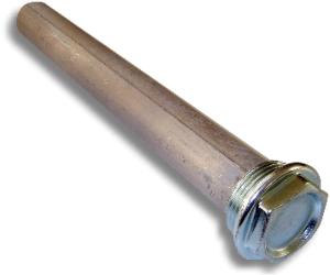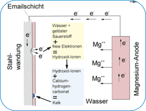OpferanodeKommen Bauteile aus Eisen oder Stahl mit Wasser oder feuchter Luft in Kontakt, so greiftder im Wasser gelöste Sauerstoff das Metall an. Dabei werden dem Metall Elektronenentzogen und die positiv geladenen Ionen gehen in die Lösung über, das Metall korrodiertund wird zerstört. Um dies zu verhindern, wird der kathodische Korrosionsschutz mitOpferanoden angewendet.Das zu schützende Metall wird mit der Opferanode leitendverbunden. Es entsteht ein Primärelement, bei dem das zuschützende Metall als Kathode und das unedlere Metall alsAnode fungiert. Dabei fließt ein Strom in Richtung des zuschützenden Metalls. Statt diesem gibt jetzt das unedlereOpferanoden-Metall seine Elektronen an den Sauerstoff ab,wird oxidiert und geht in Lösung. Das Wasser ist in diesemLokalelement der Elektrolyt, der den Transport der geladenenTeilchen ermöglicht und so den Stromkreis schließt.Die Opferanode wird mit der Zeit verbraucht und muss erneuert werden, damit der Korrosionsschutz erhalten bleibt.Eine häufige Anwendung ist der Magnesium-Opferanoden-Korrosionsschutz bei Speichern aus emailliertem Stahl undanderen Warmwasserspeichern mit aus nicht rostfreiem Stahlgefertigten Grundkörpern.Um eine nachfolgende Durchrostung der Warmwasser-Speicherzu vermeiden, wird eine Opferanode aus Magnesium an derBehälterwand angeschraubt.Funktion der Magnesium-OpferanodeEs werden Stab- und Kettenanodenunterschieden. Kettenanoden kommen zumEinsatz, wenn die Zimmerdeckenhöhe fürdas Einführen einer Stabanode nichtausreicht.Die Opferanode sollte mind. alle 2 Jahreüberprüft werden. Dafür ist eineSichtkontrolle notwendig, es sei denn dieAnode ist mit dem Speicher über ein Kabel verbunden. Dann kann die Anode gemessenwerden.Eine wartungsfreie Variante sindFremdstromanoden, die mit einerGleichstromquelle verbunden werden undpermanenten Korrosionsschutz bieten.